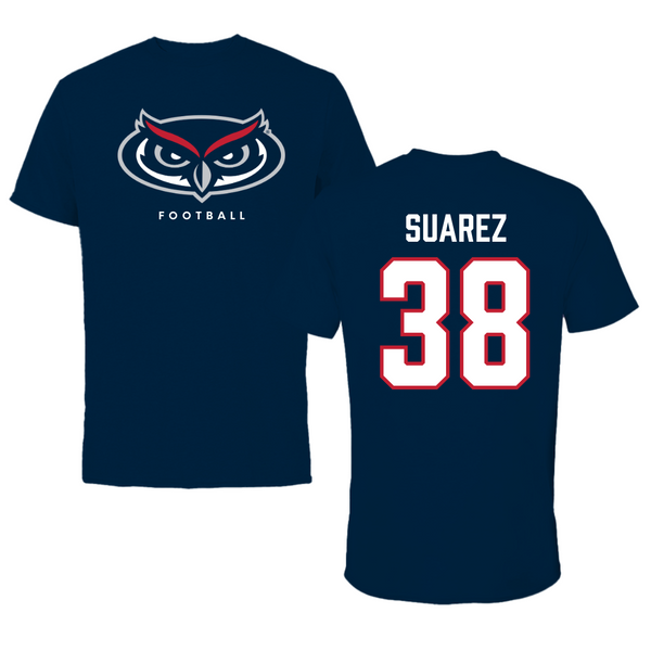 Florida Atlantic University Football Navy Block Tee - #38 Morgan Suarez