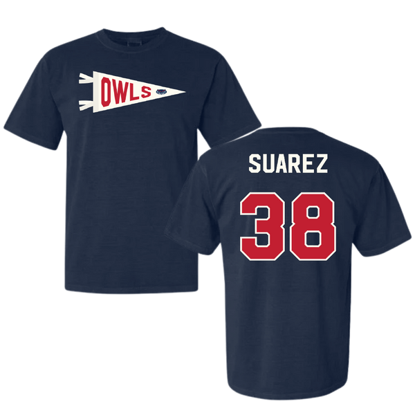 Florida Atlantic University Football Navy Pennant Comfort Colors Tee - #38 Morgan Suarez