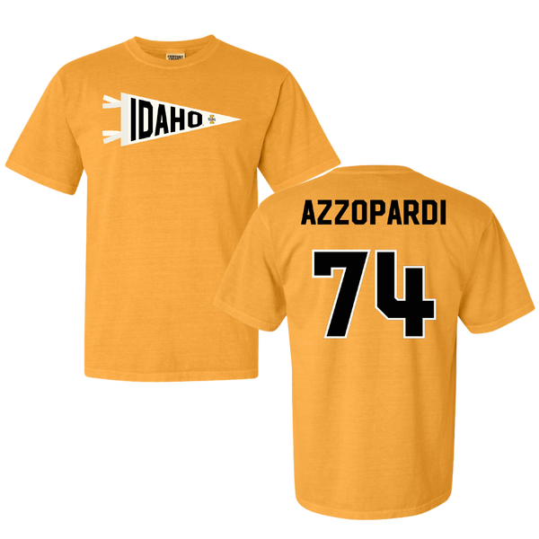 University of Idaho Football Gold Pennant Comfort Colors Tee - #74 Nate Azzopardi