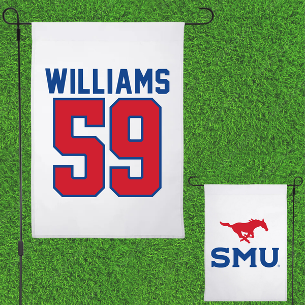 Southern Methodist University Football White Garden Flag - #59 PJ Williams