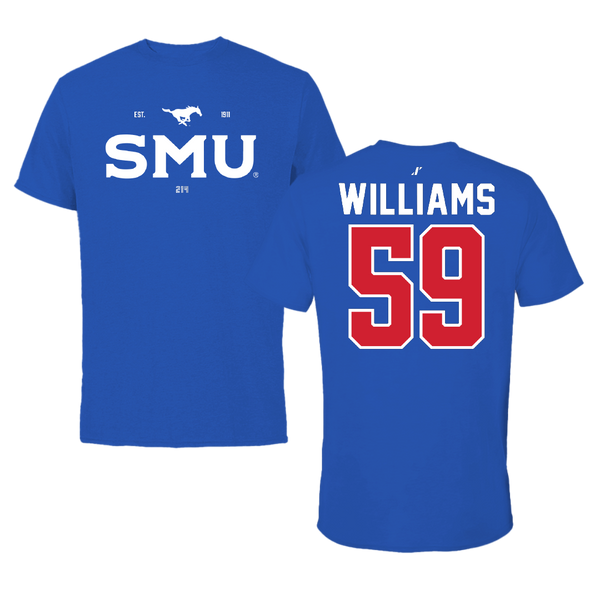 Southern Methodist University Football Blue Mascot Tee - #59 PJ Williams