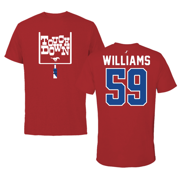 Southern Methodist University Football Canvas Red Touchdown Tee - #59 PJ Williams