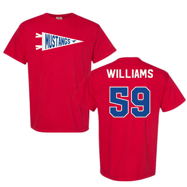 Southern Methodist University Football Red Pennant Comfort Colors Tee - #59 PJ Williams
