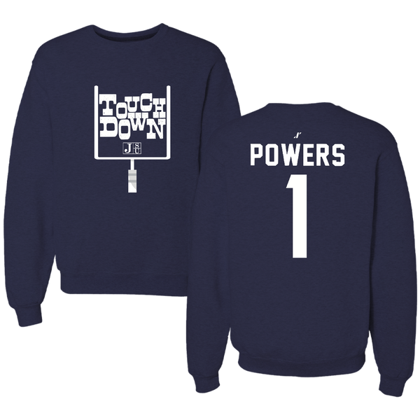 Jackson State University Football Navy Touchdown Crewneck - #1 Rico Powers