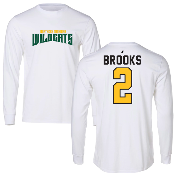 Northern Michigan University Basketball White Classic Long Sleeve - #2 Riley Brooks