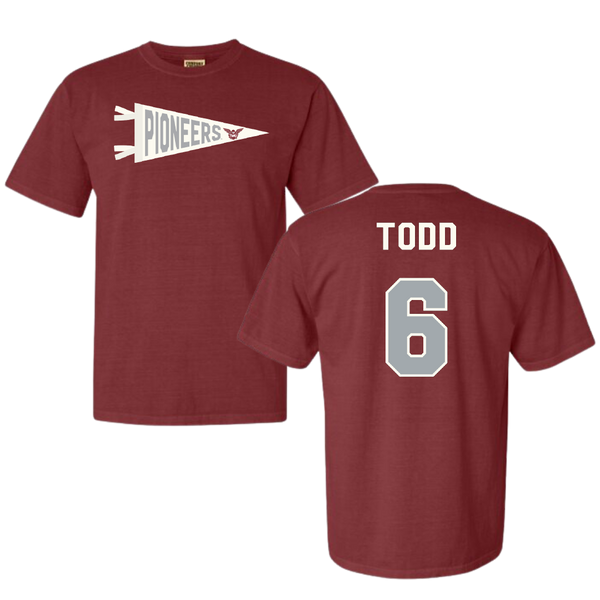 Texas Woman's University Softball Maroon Pennant Comfort Colors Tee - #6 Riley Todd