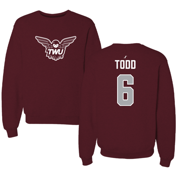 Texas Woman's University Softball Maroon Crewneck - #6 Riley Todd