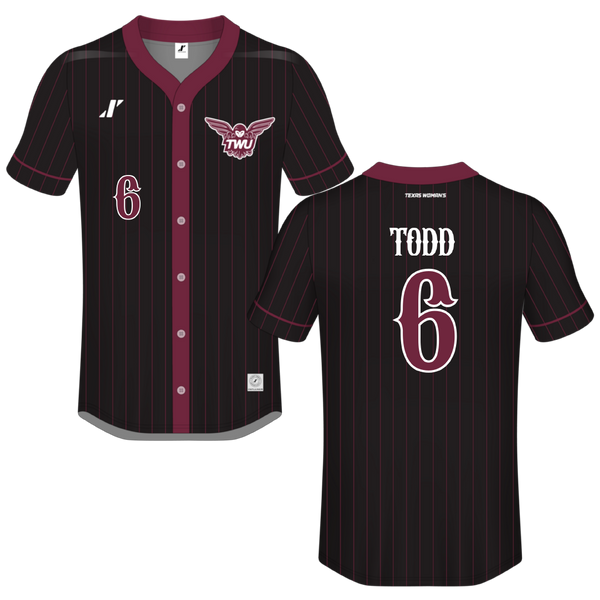 Texas Woman's University Black Pinstripe Button-Down Jersey - #6 Riley Todd