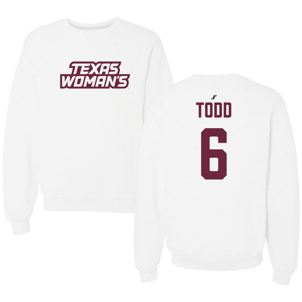 Texas Woman's University Softball White Crewneck - #6 Riley Todd
