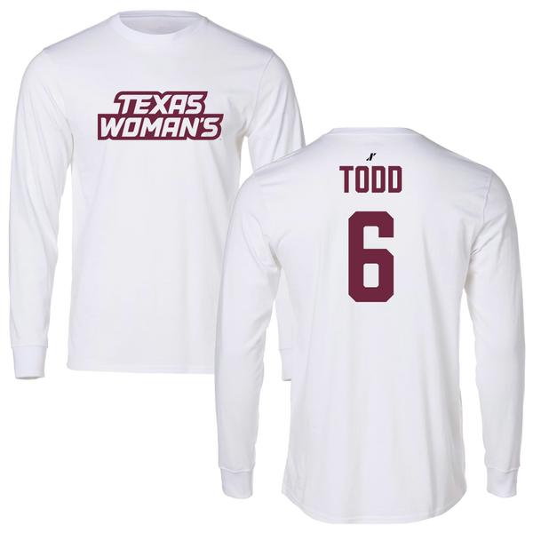 Texas Woman's University Softball White Long Sleeve - #6 Riley Todd