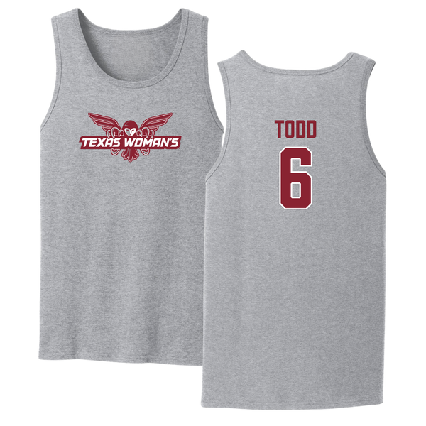 Texas Woman's University Softball Sport Gray Tank Top - #6 Riley Todd