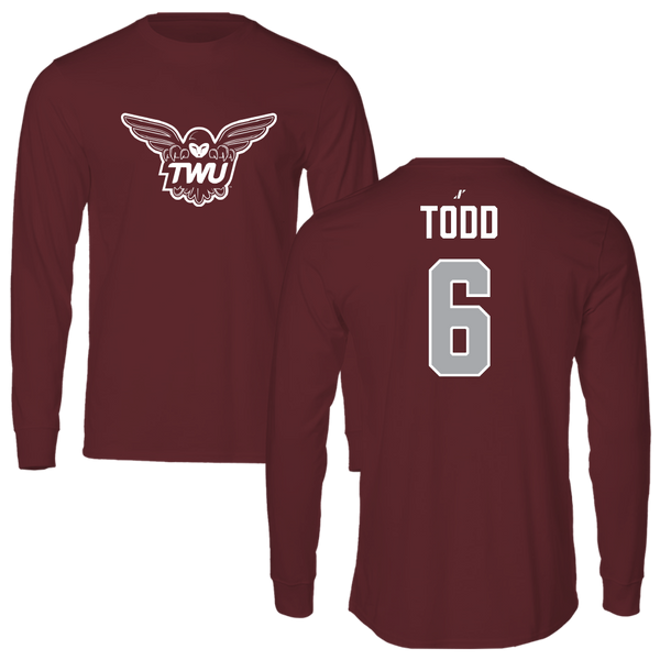 Texas Woman's University Softball Maroon Long Sleeve - #6 Riley Todd