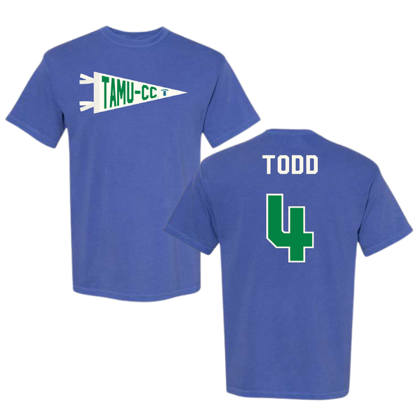 Texas A&M University-Corpus Christi Softball Blue Pennant Comfort Colors Tee - #4 Riley Todd