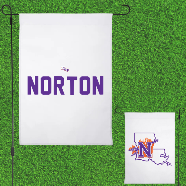 Northwestern State University TF and XC White Garden Flag - Robert Norton