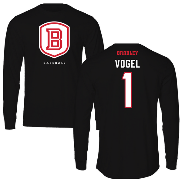 Bradley University Baseball Black Shield Long Sleeve - #1 Ryan Vogel