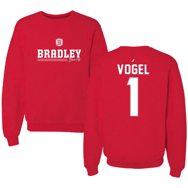 Bradley University Baseball Red General Crewneck - #1 Ryan Vogel