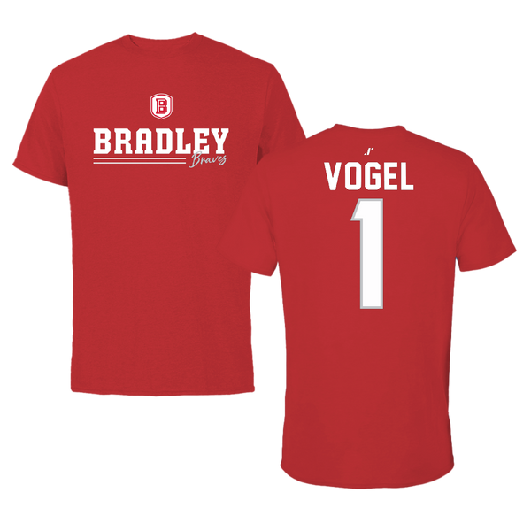 Bradley University Baseball Red Block Tee - #1 Ryan Vogel