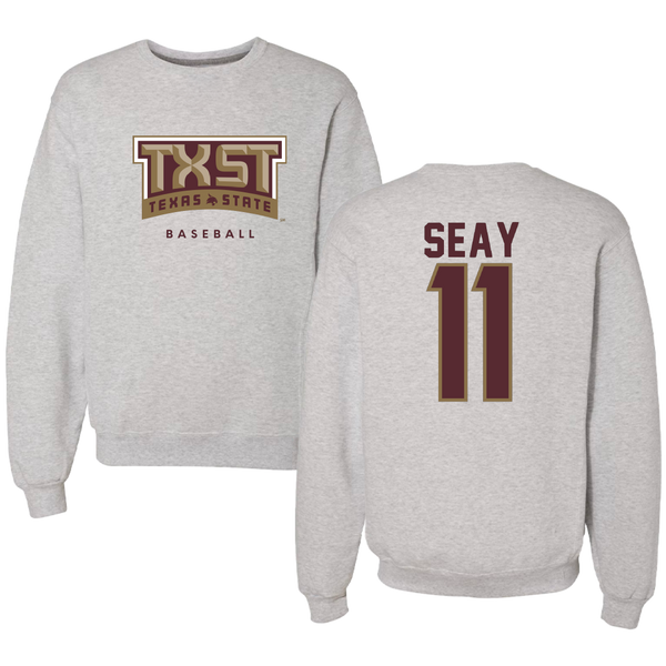 Texas State University Baseball Gray Crewneck - #11 Taylor Seay