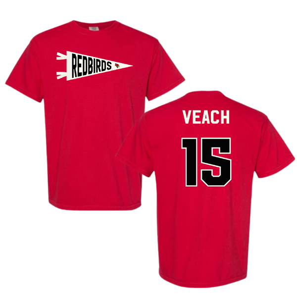 Illinois State University Basketball Red Pennant Comfort Colors Tee - #15 Taylor Veach