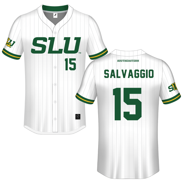 Southeastern Louisiana University White Pinstripe Button-Down Jersey - #15 TJ Salvaggio