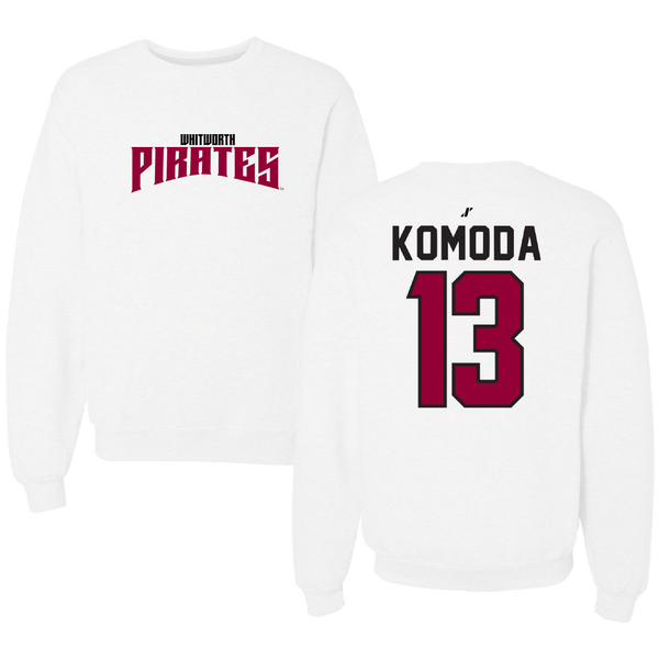 Whitworth University Baseball White Classic Crewneck - #13 Ty Komoda