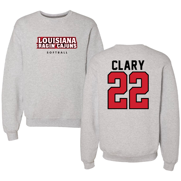 University of Louisiana at Lafayette Softball Gray Crewneck - #22 Tyra Clary