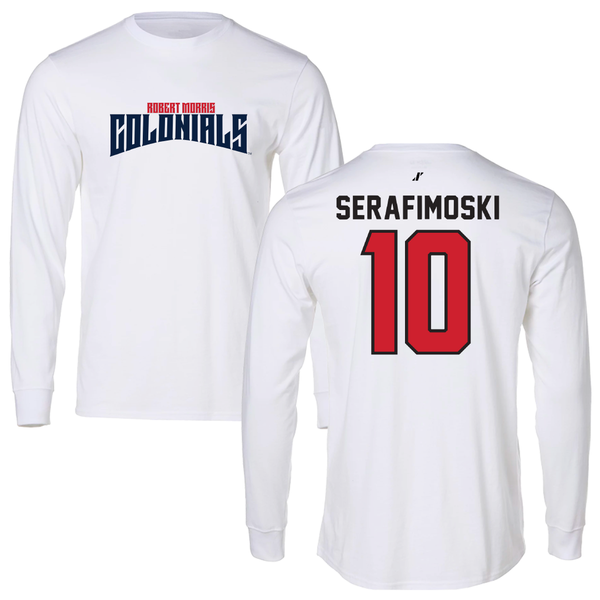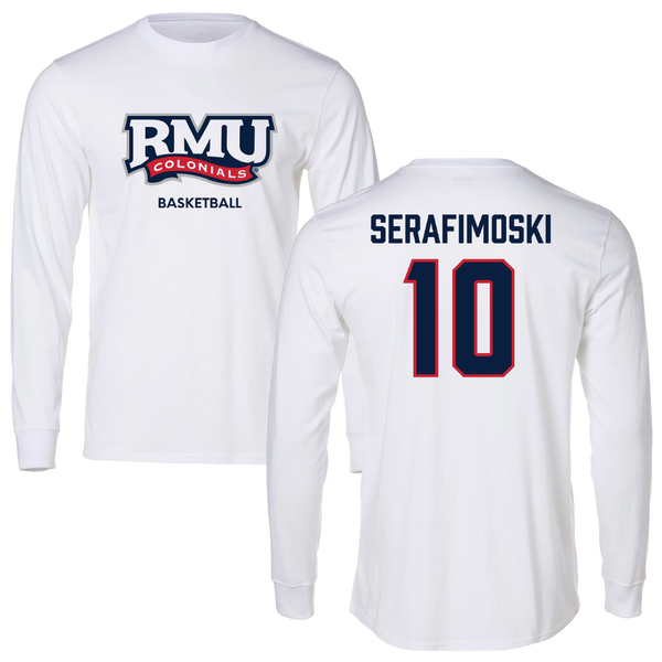 Robert Morris University Basketball (M) White Long Sleeve - #10 Vasilije Serafimoski
