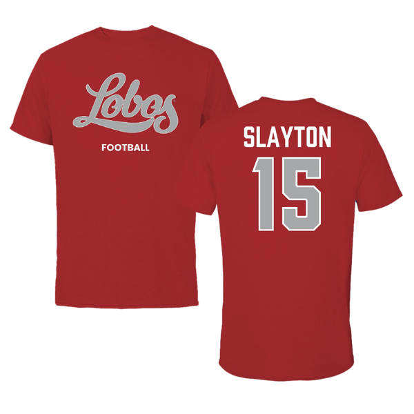 University of New Mexico Football Canvas Red Tee - #15 Xavier Slayton