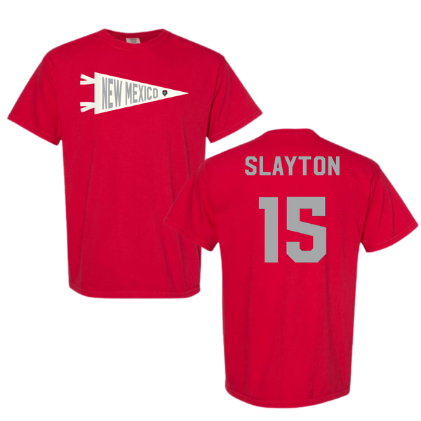 University of New Mexico Football Red Pennant Comfort Colors Tee - #15 Xavier Slayton