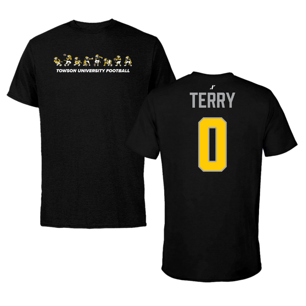 Towson University Football Black Cartoon Doc Team Performance Tee - #0 Xavier Terry
