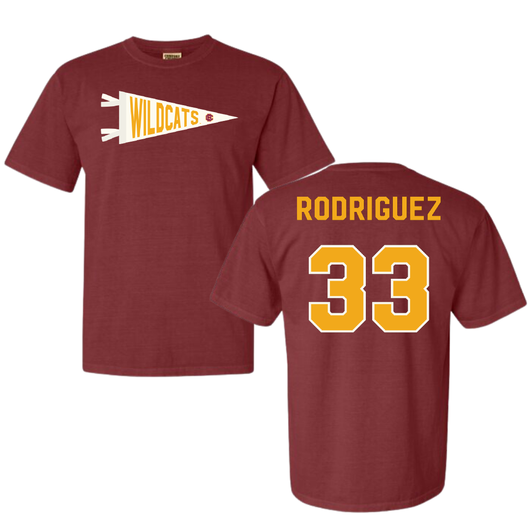 Bethune-Cookman University Baseball Maroon Pennant Comfort Colors Tee - #33 Jorge Rodriguez
