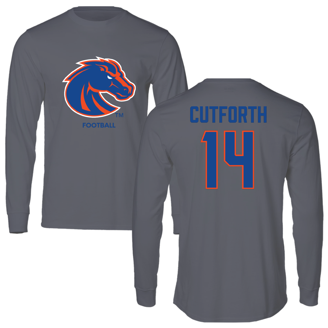 Boise State University Football Dark Gray Long Sleeve - #14 Max Cutforth