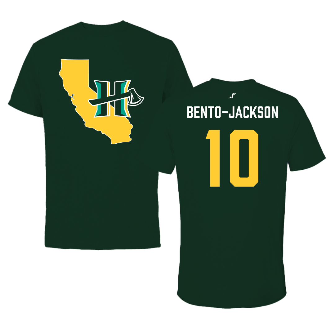 Erhöhe die Menge für Cal Poly Humboldt Basketball (M) Forest Green Lumberjacks State Tee - #10 Brandon Bento-Jackson