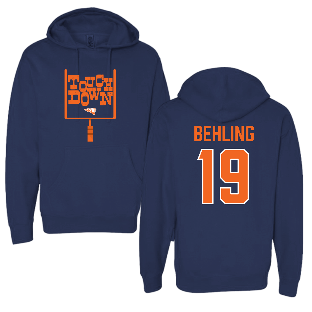 Carroll University Football Navy Touchdown Hoodie - #19 Jonah Behling