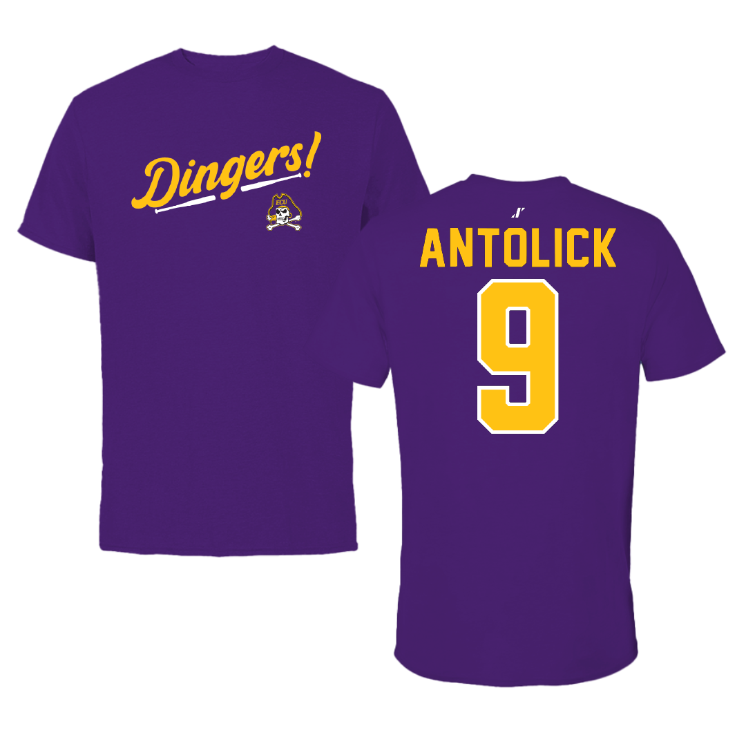 East Carolina University Baseball Purple Dingers Tee - #9 Brett Antolick