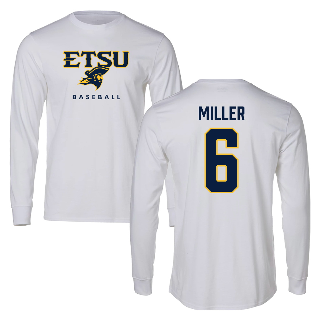 East Tennessee State University Baseball White Long Sleeve - #6 Cody Miller