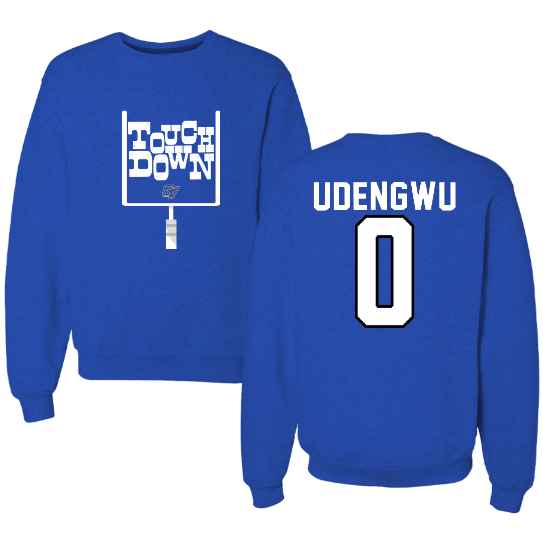 Grand Valley State University Football Blue Touchdown Crewneck - #0 Ike Udengwu