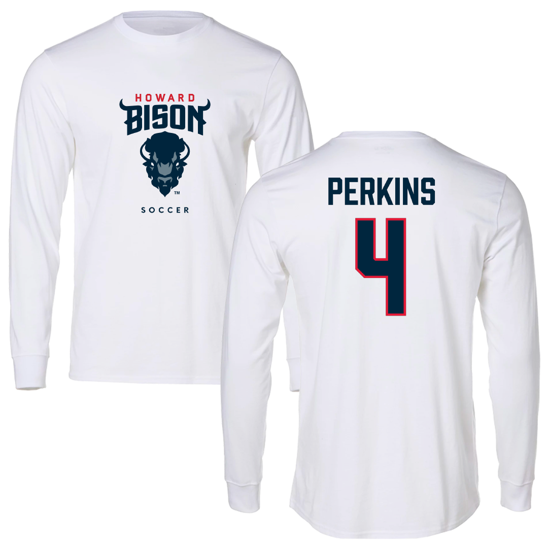 Howard University Soccer (M) White Long Sleeve - #4 Louis Perkins