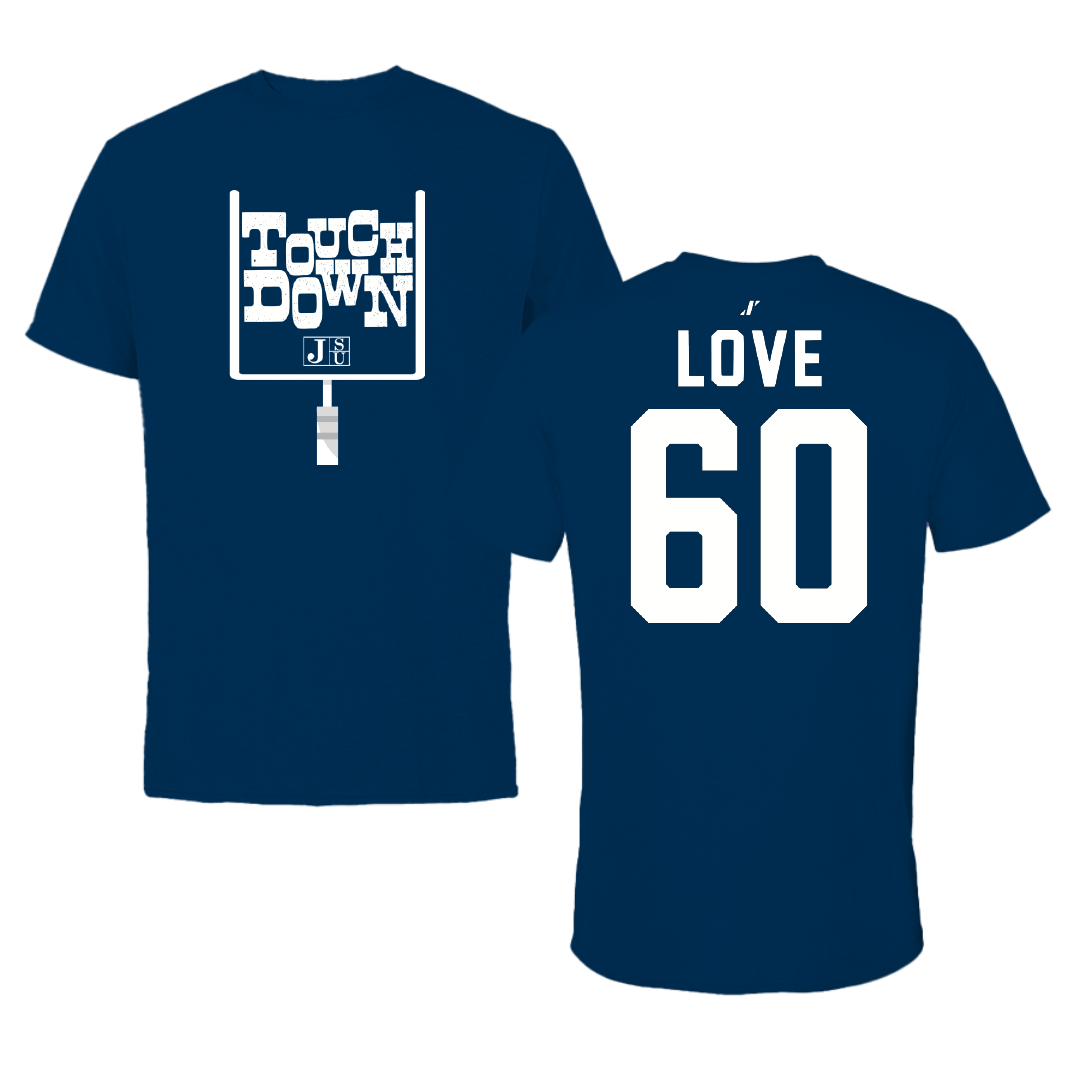 Jackson State University Football Navy Touchdown Tee - #60 Devin Love