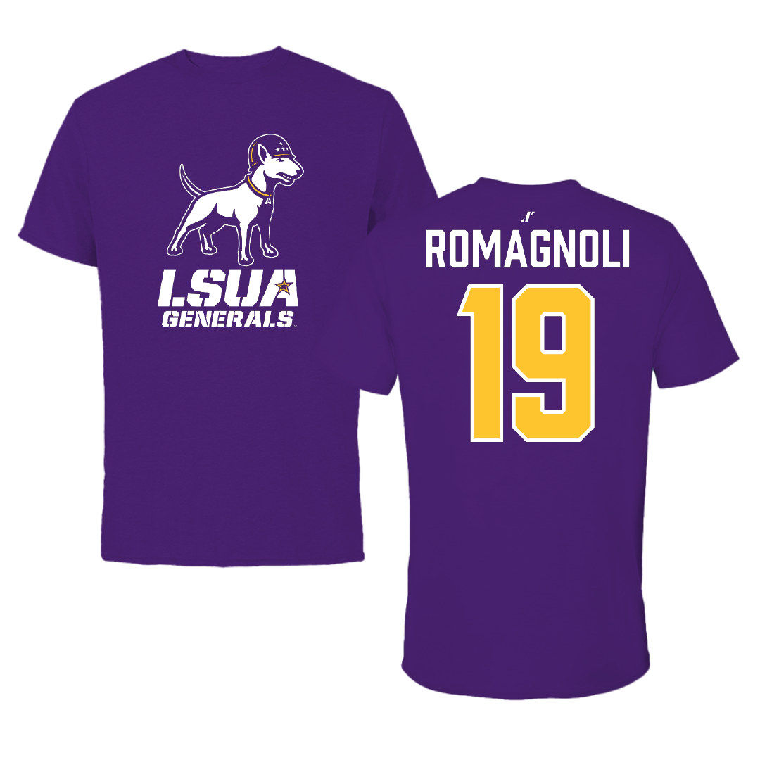 Erhöhe die Menge für Louisiana State University-Alexandria Soccer Purple Tee - #19 Maximo Romagnoli