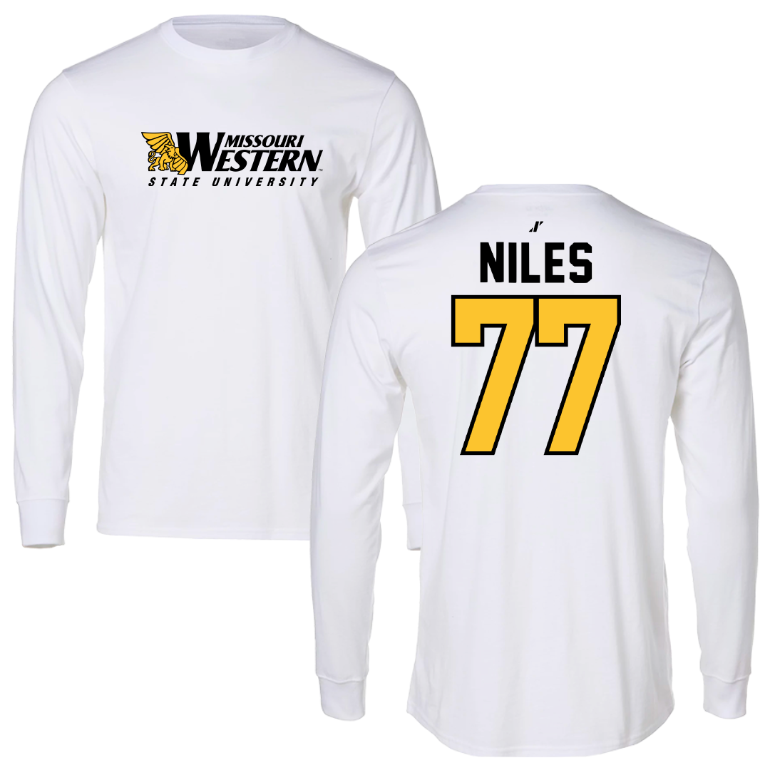 Missouri Western State University Football White Performance Long Sleeve - #77 Dylan Niles