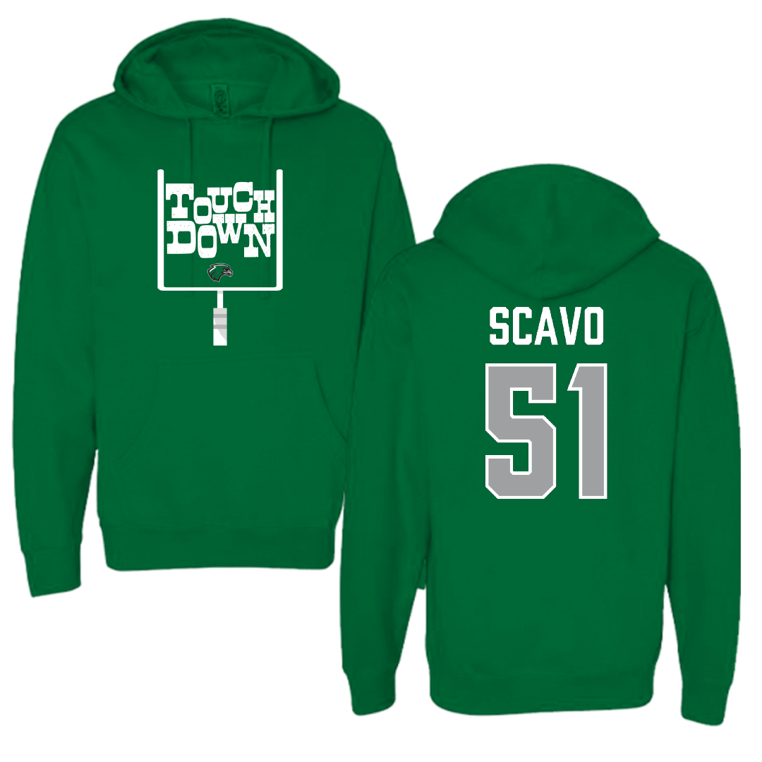 Northeastern State University Football Green Touchdown Hoodie - #51 Anthony Scavo