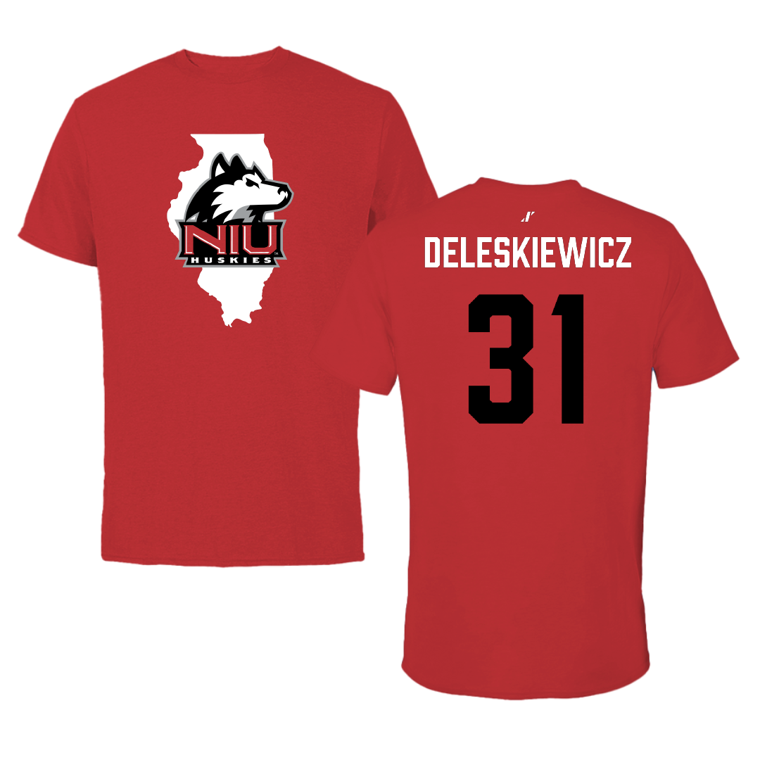 Northern Illinois University Baseball Red State Tee - #31 Tyler Deleskiewicz