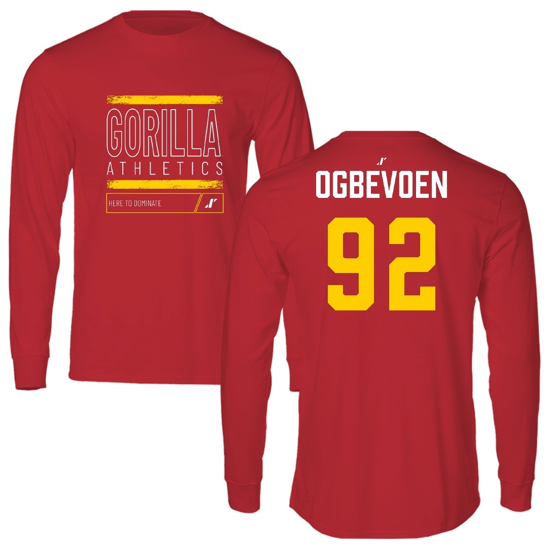 Pittsburg State University Football Red Dominate Performance Long Sleeve - #92 Osahon Ogbevoen