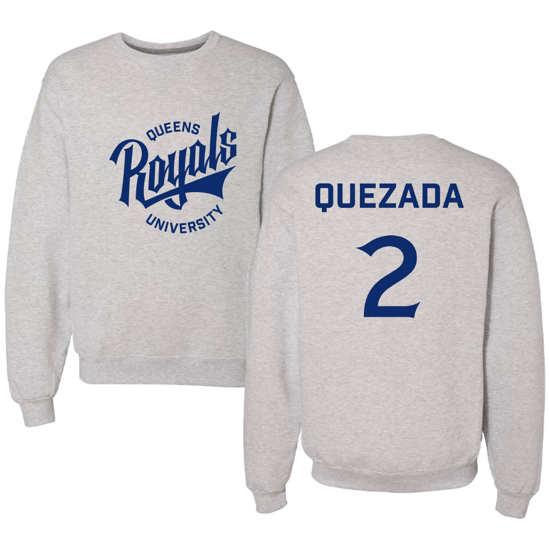 Queens University of Charlotte Baseball Light Gray Crewneck - #2 Adrian Quezada