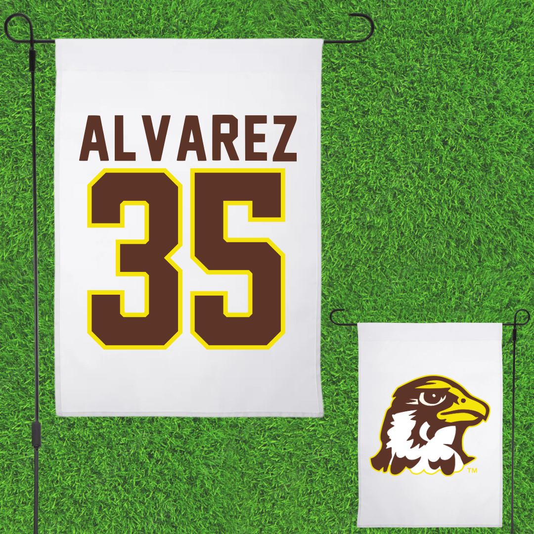 Quincy University Baseball White Garden Flag - #35 Mike Alvarez