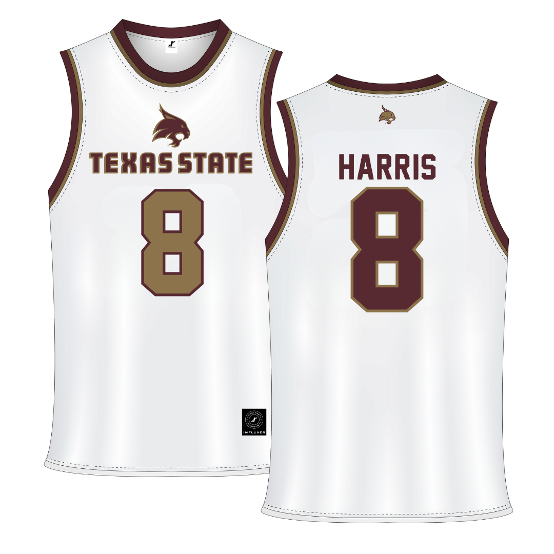 Texas State University White Basketball Jersey - #8 Jamia Harris