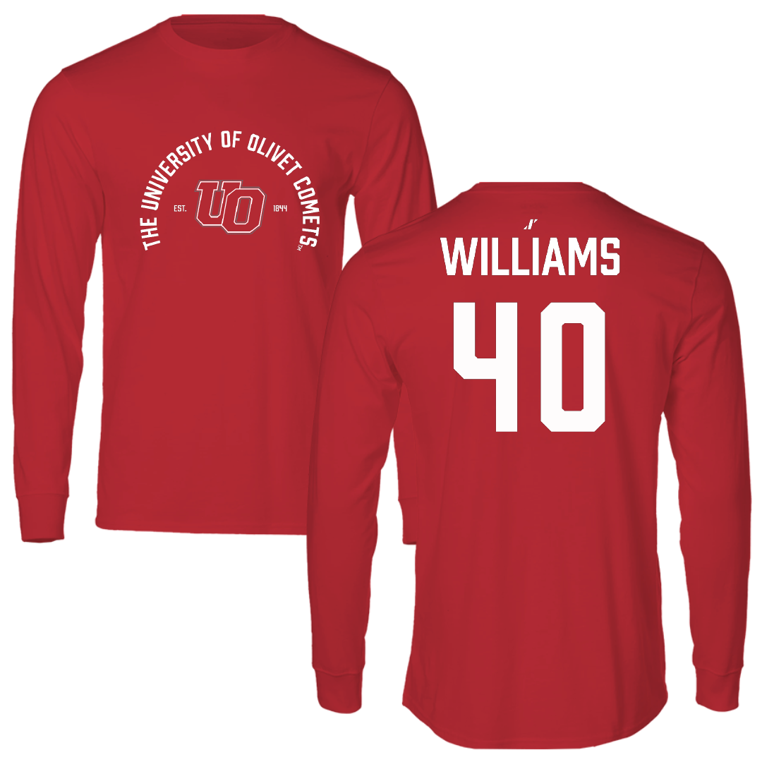 The University of Olivet Baseball Red General Long Sleeve - #40 Braxton Williams