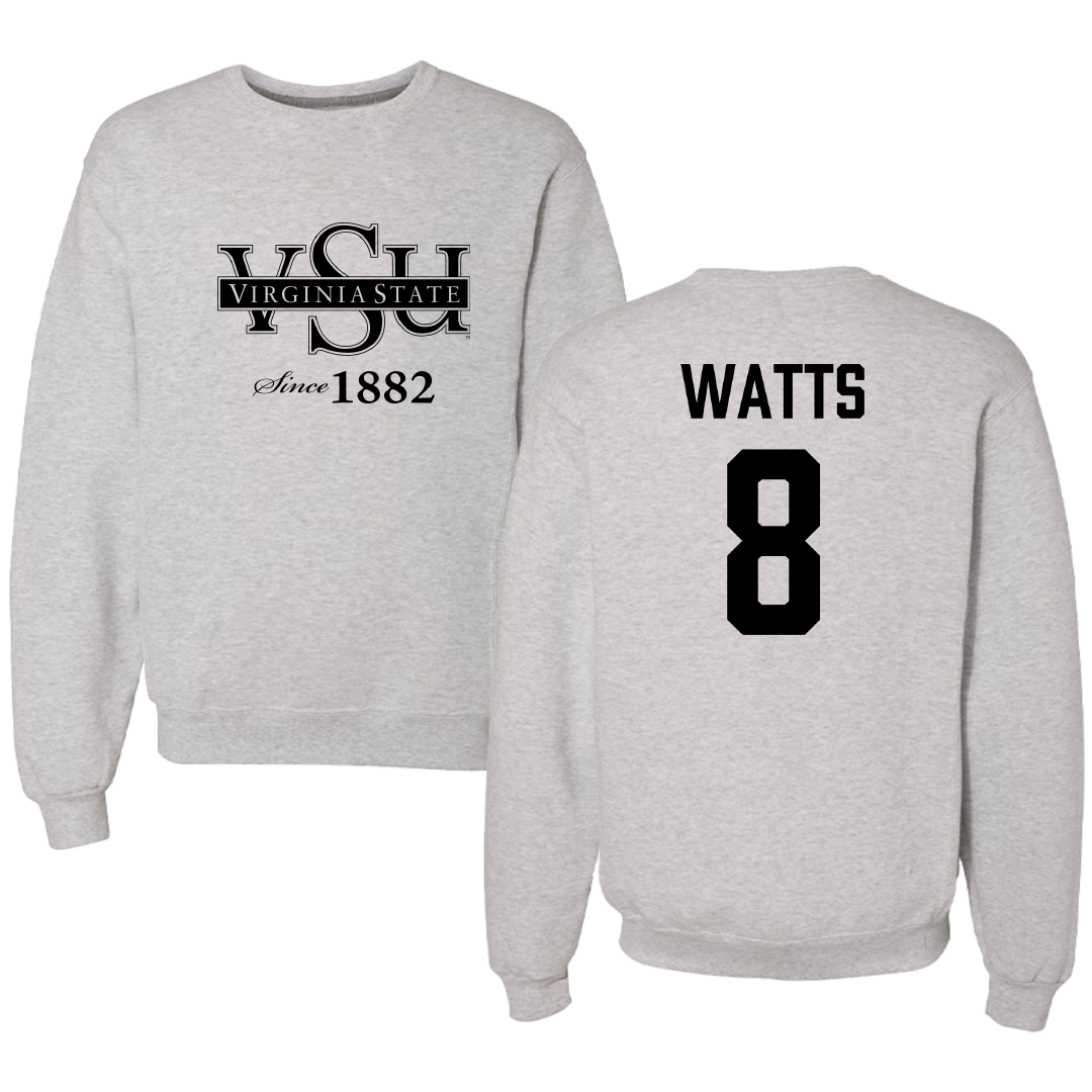 Virginia State University Lacrosse (M) Gray Crewneck - #8 Christian Watts