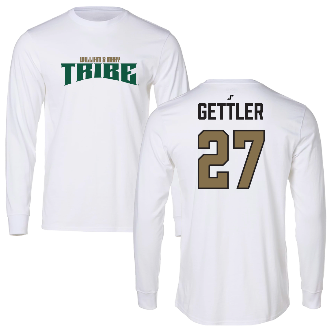William & Mary Soccer (M) White Classic Long Sleeve - #27 Reed Gettler